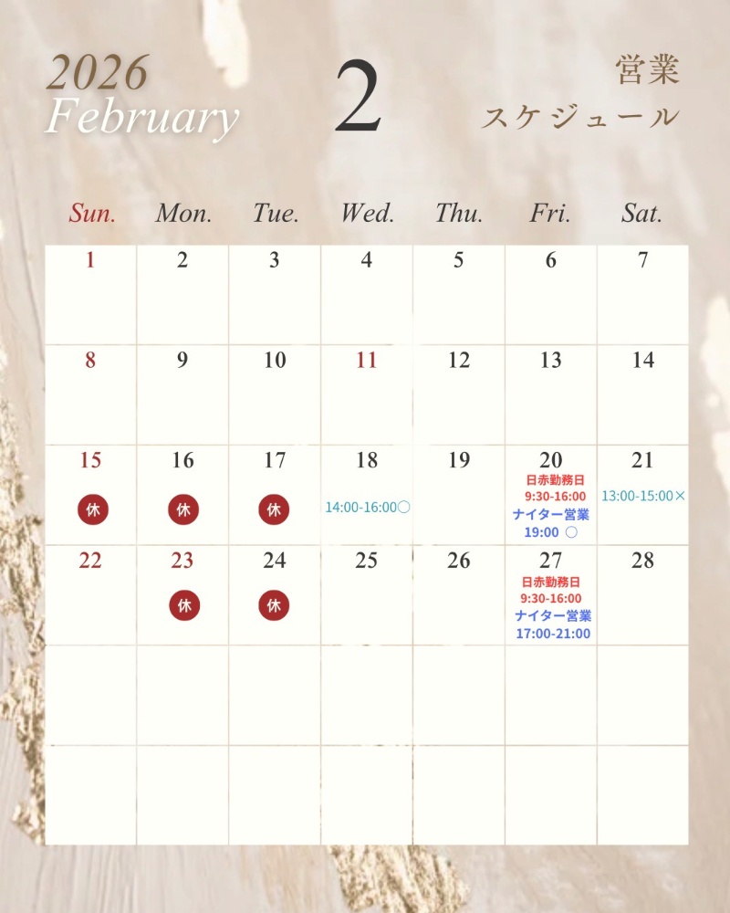 予約状況はご予約いただいた時点で随時更新しておりますが、HP以外からのご予約のタイミングによっては更新が遅れる場合もございますのでご了承ください